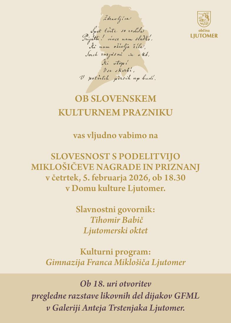 Osrednja občinska slovesnost ob kulturnem prazniku (VABILO)