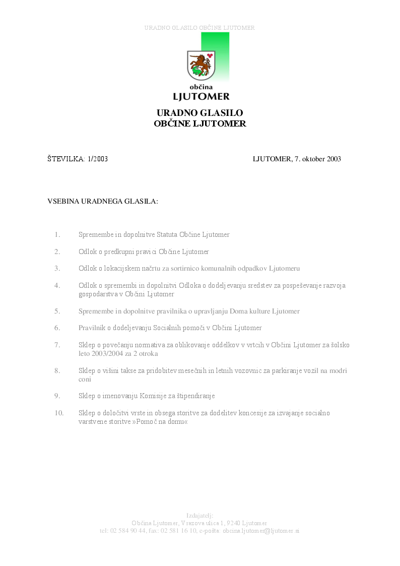 Spremembe in dopolnitve Statuta Občine Ljutomer (Uradno glasilo Občine Ljutomer, 1/2003)