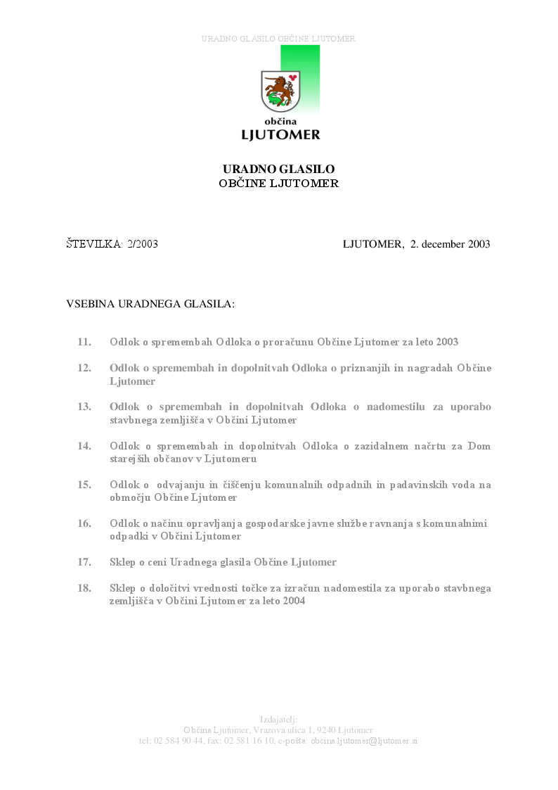Sklep o ceni Uradnega glasila Občine Ljutomer (Uradno glasilo Občine Ljutomer, 2/2003)