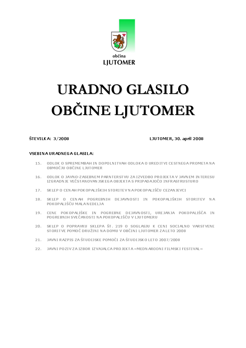 Odlok o spremembah in dopolnitvah Odloka o ureditvi cestnega prometa na območju Občine Ljutomer (Uradno glasilo Občine Ljutomer, 3/2008)