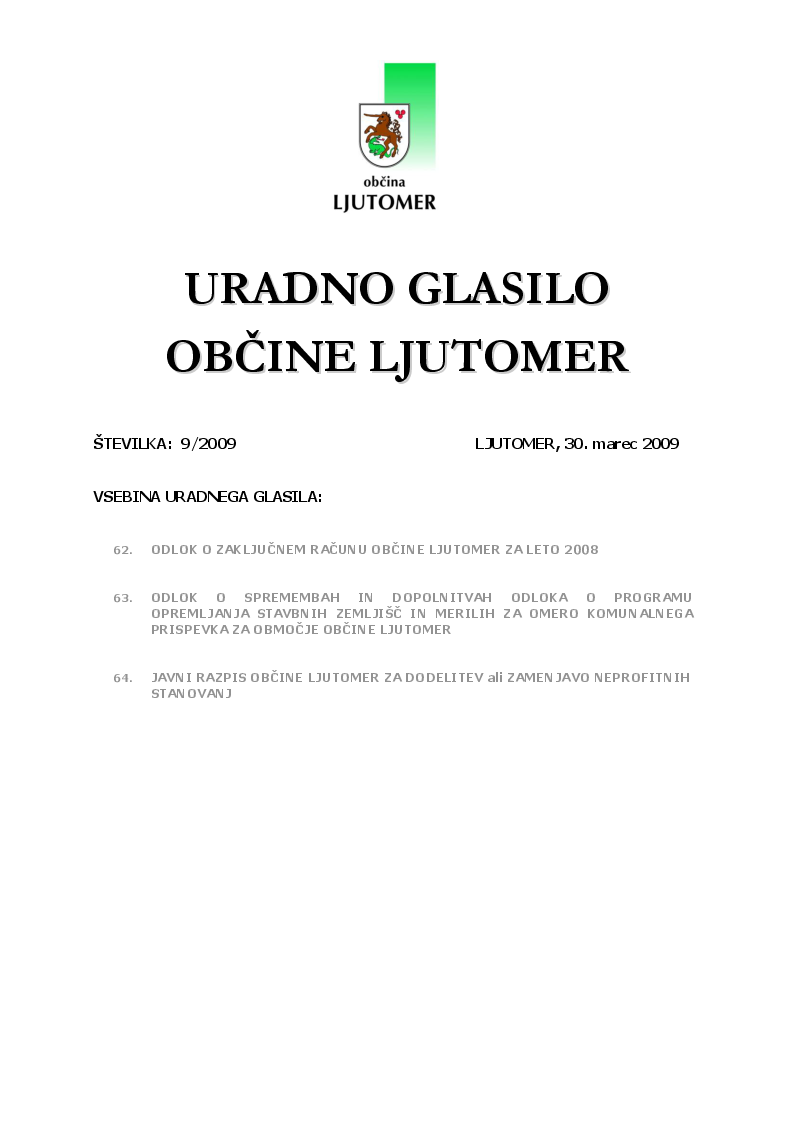 Odlok o zaključnem računu Občine Ljutomer za leto 2008 (Uradno glasilo Občine Ljutomer, 9/2009)