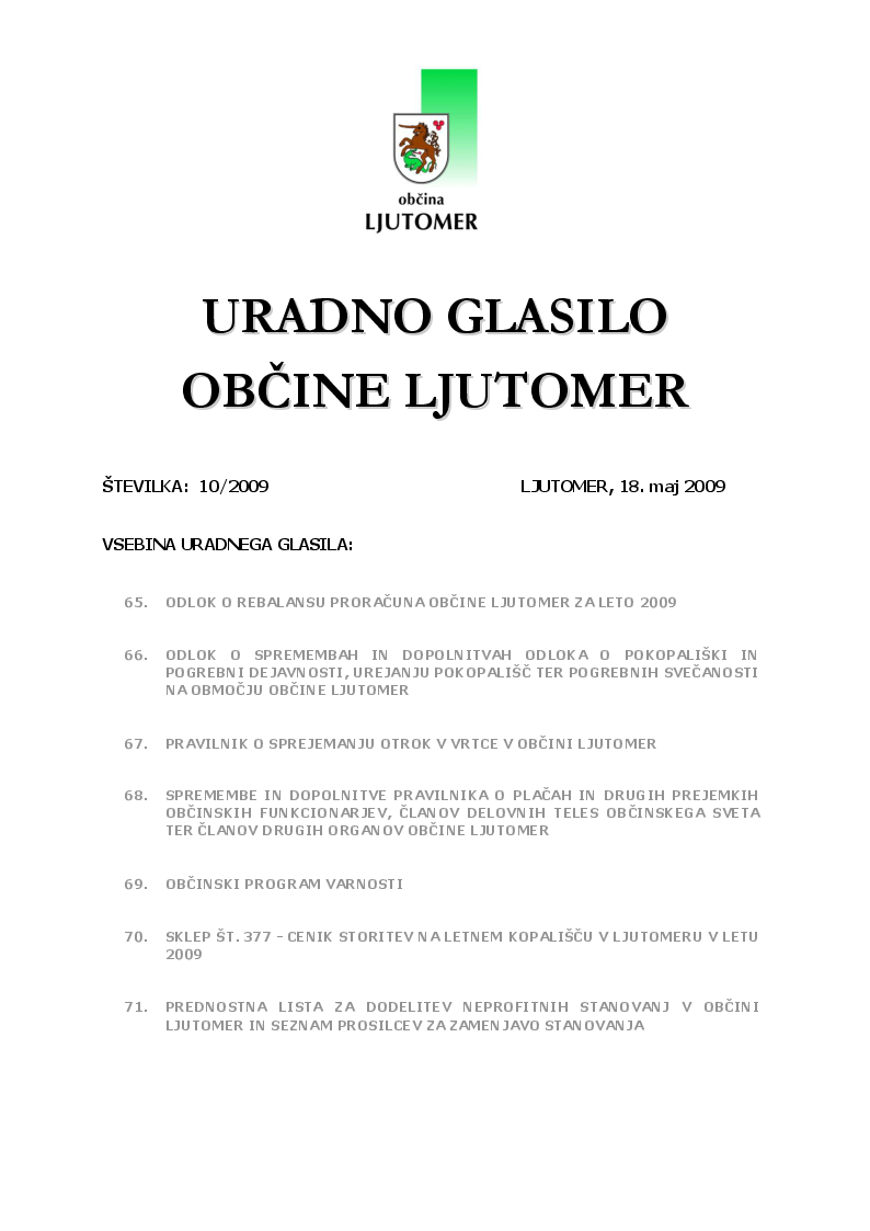 Odlok o rebalansu proračuna Občine Ljutomer za leto 2009 (Uradno glasilo Občine Ljutomer, 10/2009)