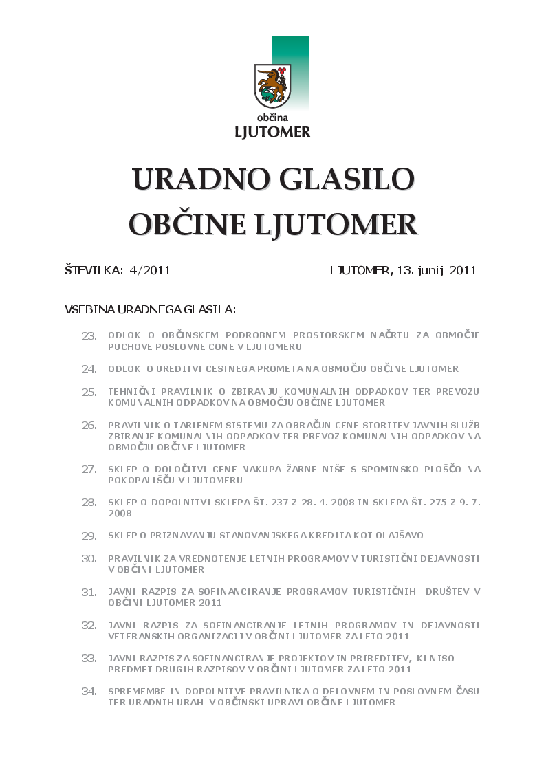 Tehnični pravilnik o zbiranju komunalnih odpadkov ter prevozu komunalnih odpadkov na območju Občine Ljutomer (Uradno glasilo Občine Ljutomer, 4/2011)