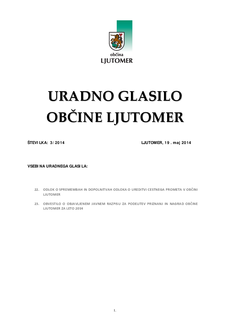 Odlok o spremembah in dopolnitvah Odloka o ureditvi cestnega prometa v Občini Ljutomer (Uradno glasilo Občine Ljutomer, 3/2014)